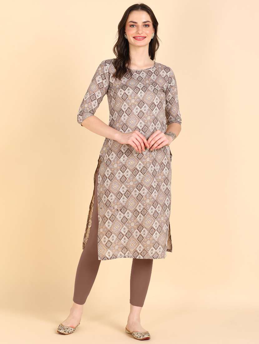 - » beige printed straight kurta
