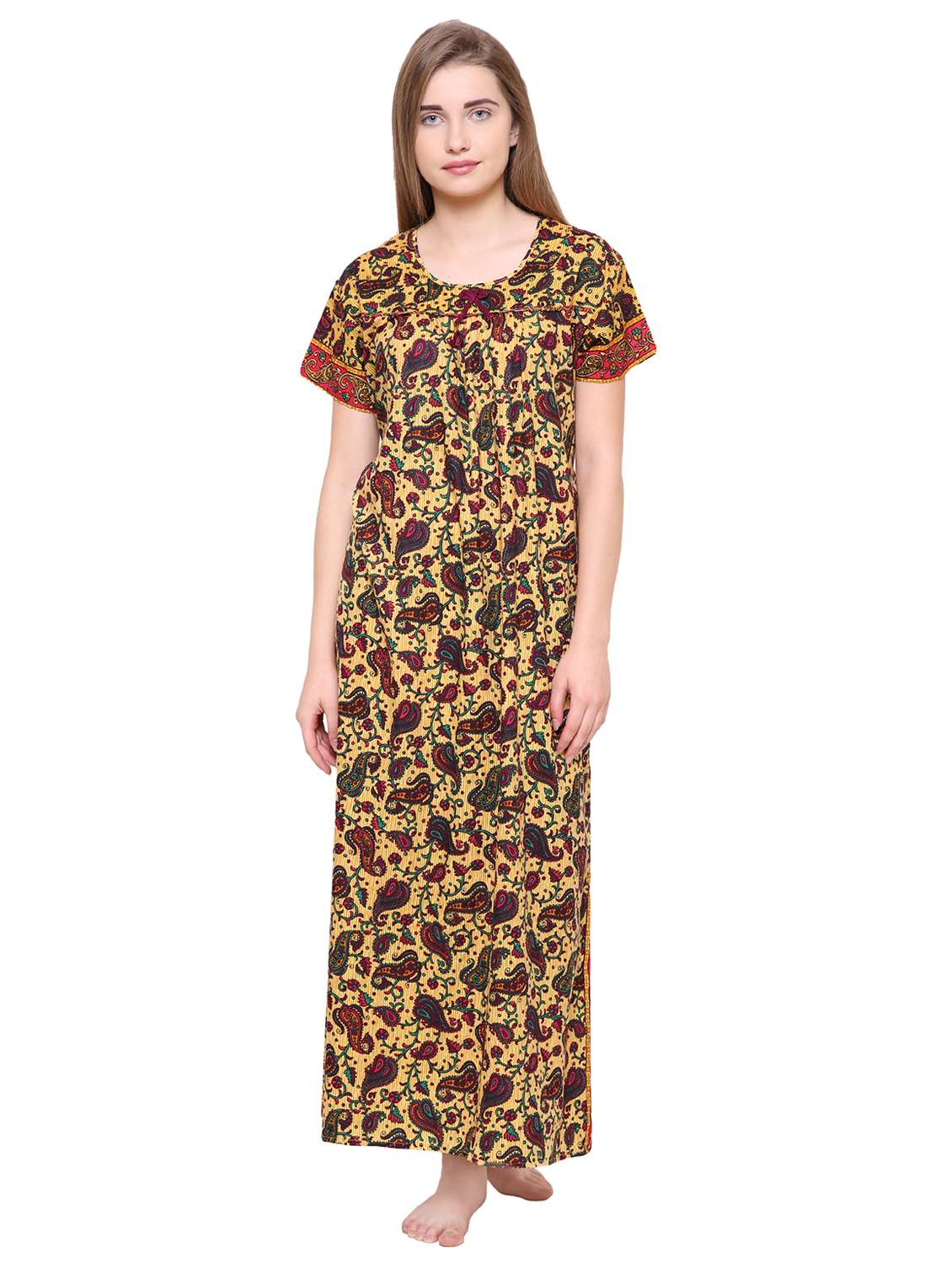 100% Cotton Women Full Length Printed Women Nightdress. Free Size. Soft and Ultra Comfortable Fabric. Best Fit Upto 40\" Bust. Regular Fit. Length 54 Inches. Daily Wear Nighty.Fast Color. Gentle Cold Water Wash.