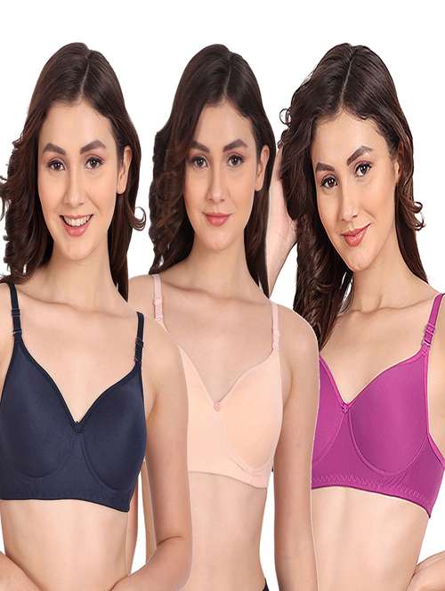 - » pack of 3 solid multi coloredn regular bra