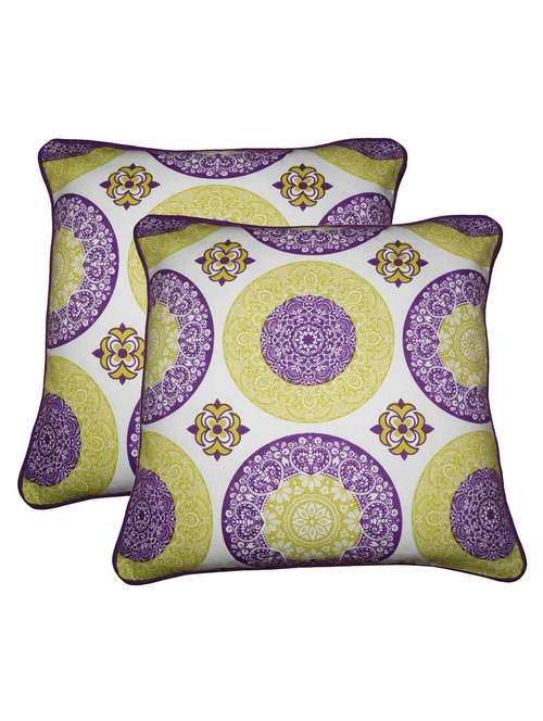 - » lushomes bold printed cotton cushion covers with co-ordinating cord piping (size 16" x 16") pack of 2