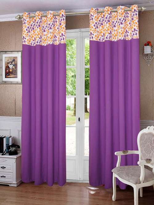 - » lushomes shadow printed bloomberry cotton curtains with 8 eyelets & printed tiebacks for door (single pc)
