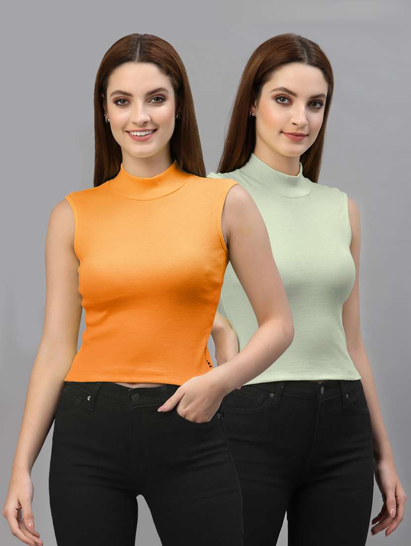 - Opt for this top made up of cotton lycra material and get it in a varied neck design.