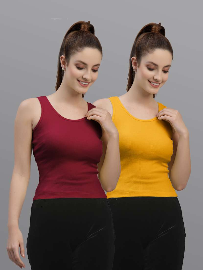 - Opt for this top made up of cotton lycra material and get it in a varied neck design.