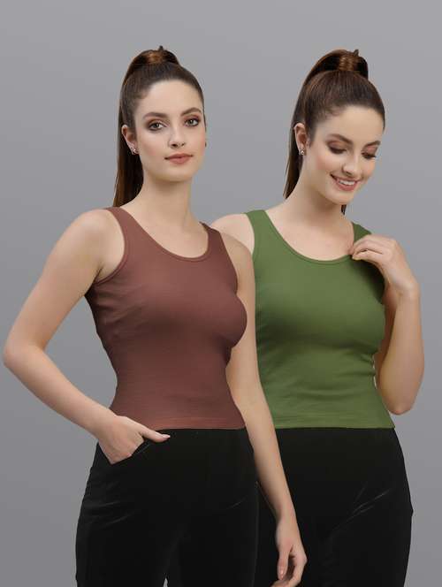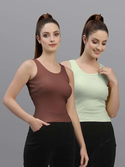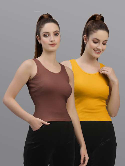 - Opt for this top made up of cotton lycra material and get it in a varied neck design.