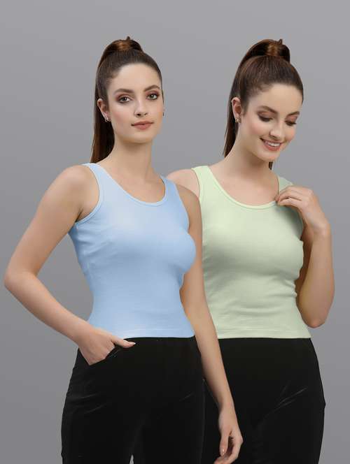 - Opt for this top made up of cotton lycra material and get it in a varied neck design.