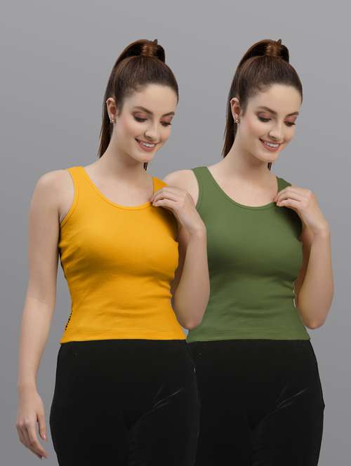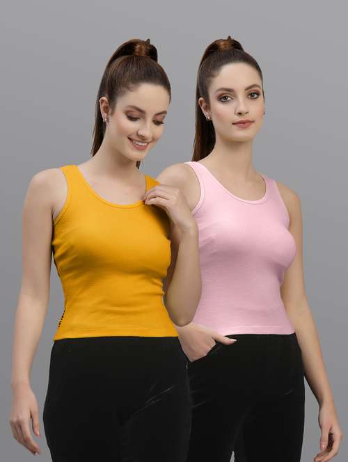 - Opt for this top made up of cotton lycra material and get it in a varied neck design.