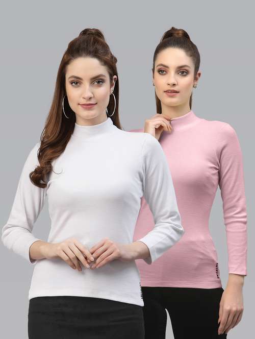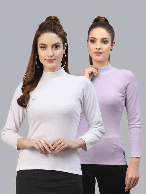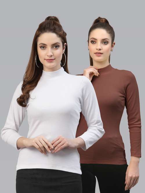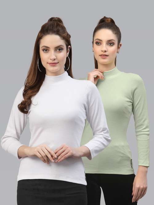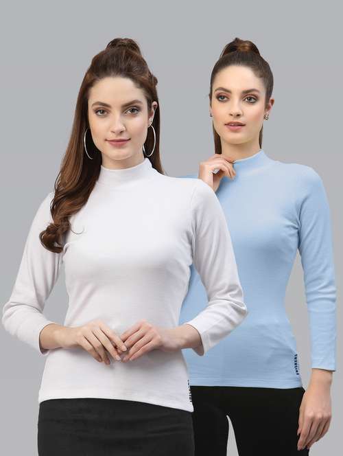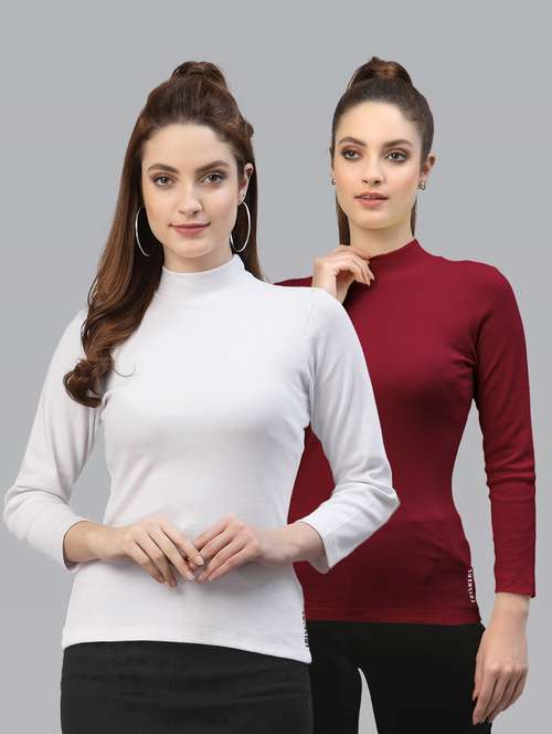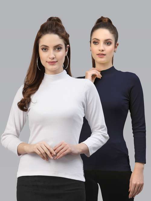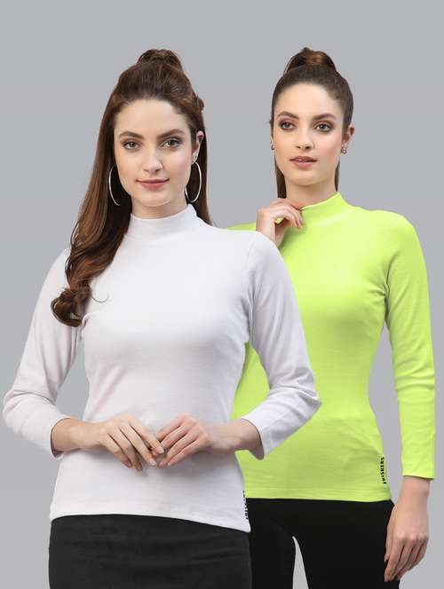 - Opt for this top made up of cotton lycra material and get it in a varied neck design.