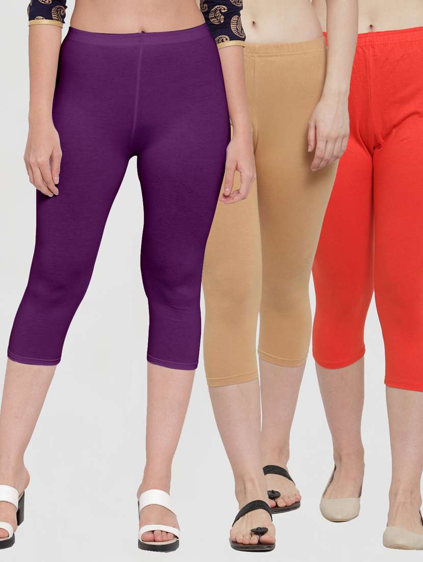 pack of 3 solid capri leggings