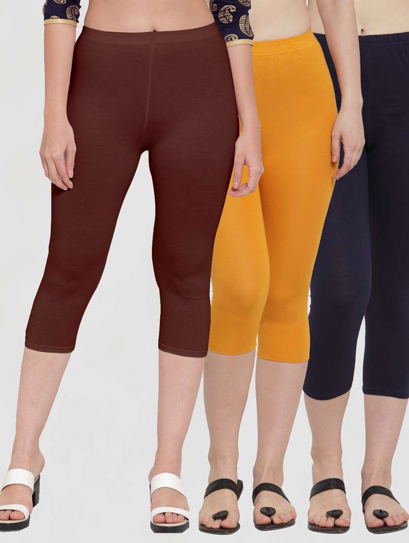 pack of 3 multi colored capri leggings
