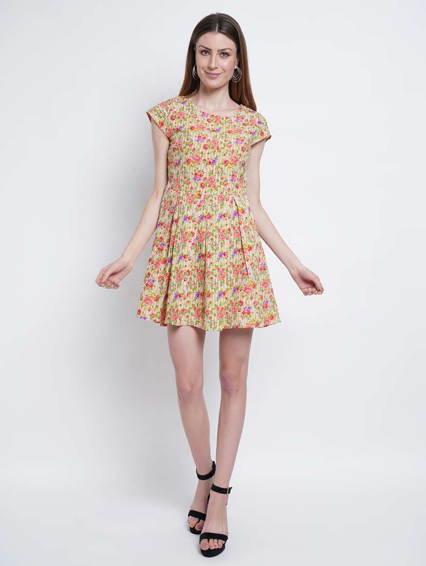 round neck printed fit & flare dress