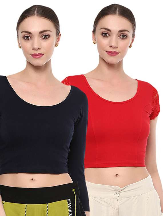 multi colored cotton lycra combos blouse - 15287645 - Very Small Image - 1
