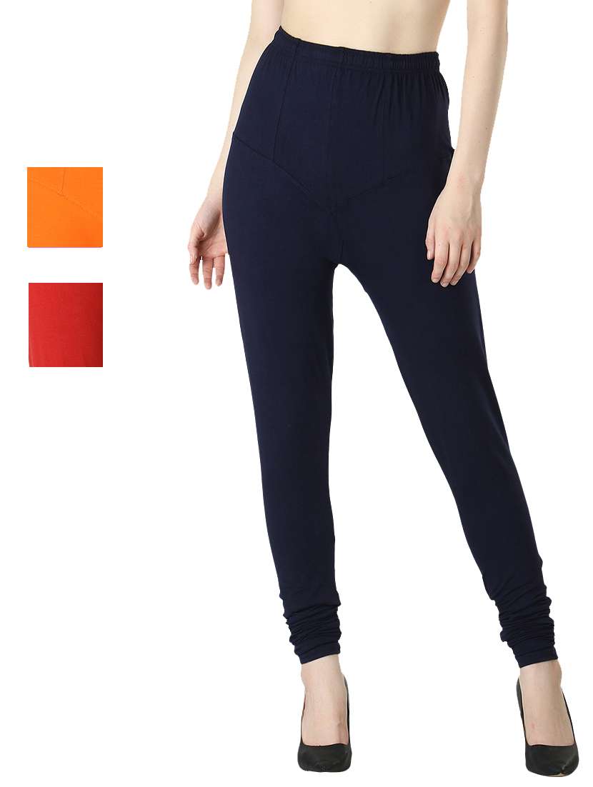 Women Solid Churidar Leggings (Set of 3: Navy, Red, Orange)
