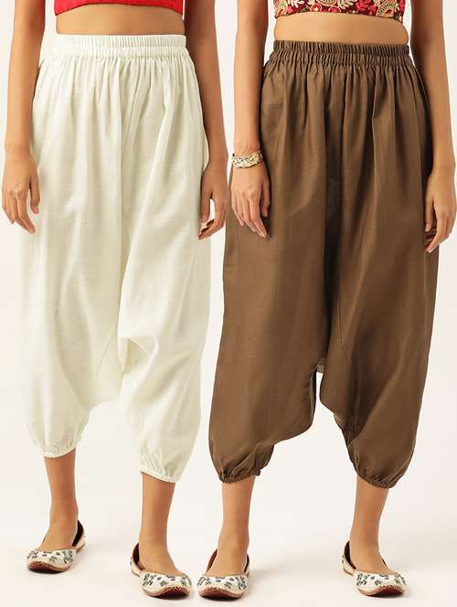 - » pack of 2 solid high-rise harem pants with elasticated waist