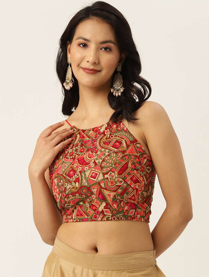 - » women red embroidered stitched blouse