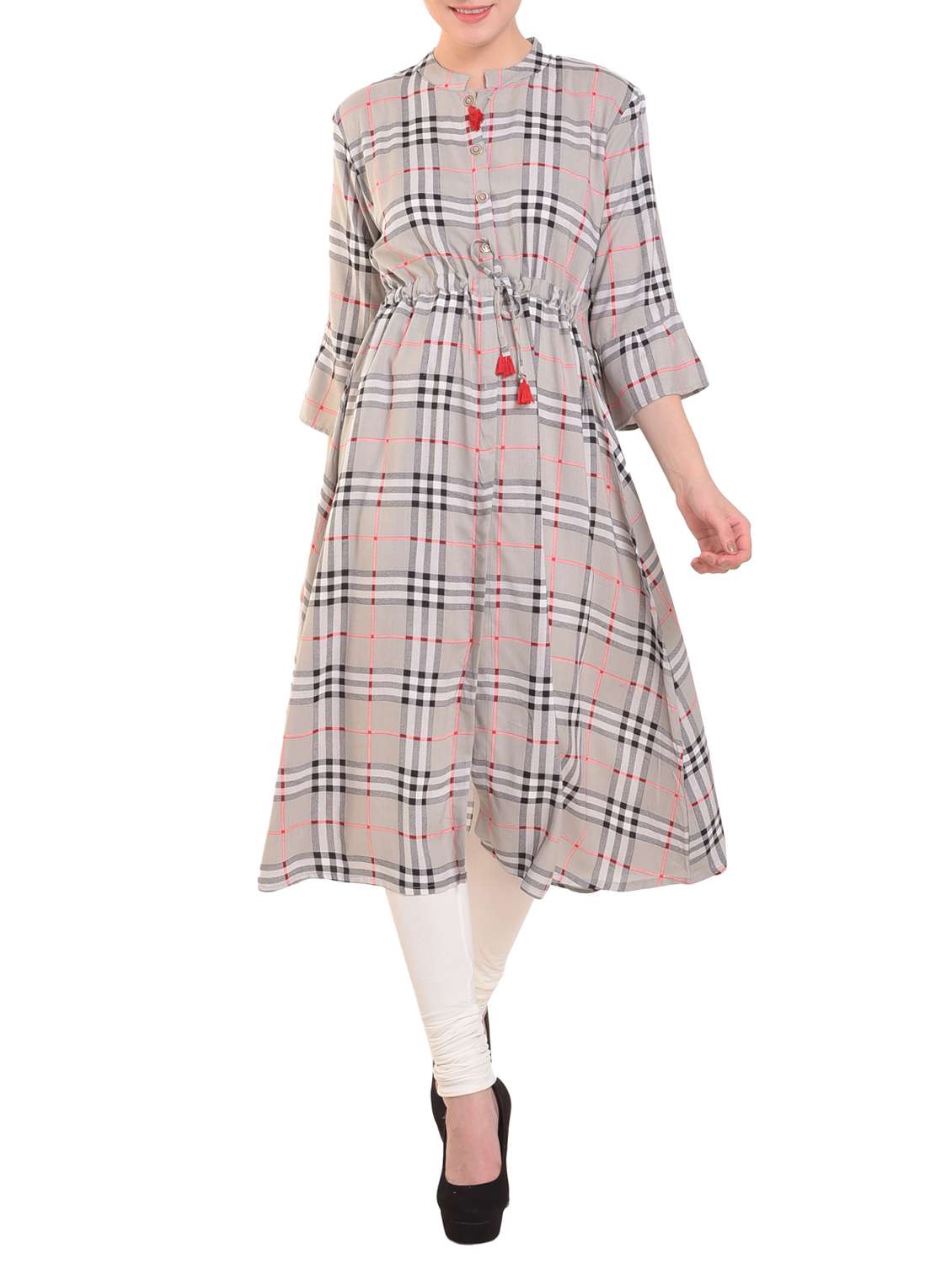 - » a-line checker kurta with tassels