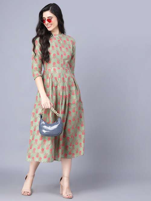 button up printed fit & flare fusion dress