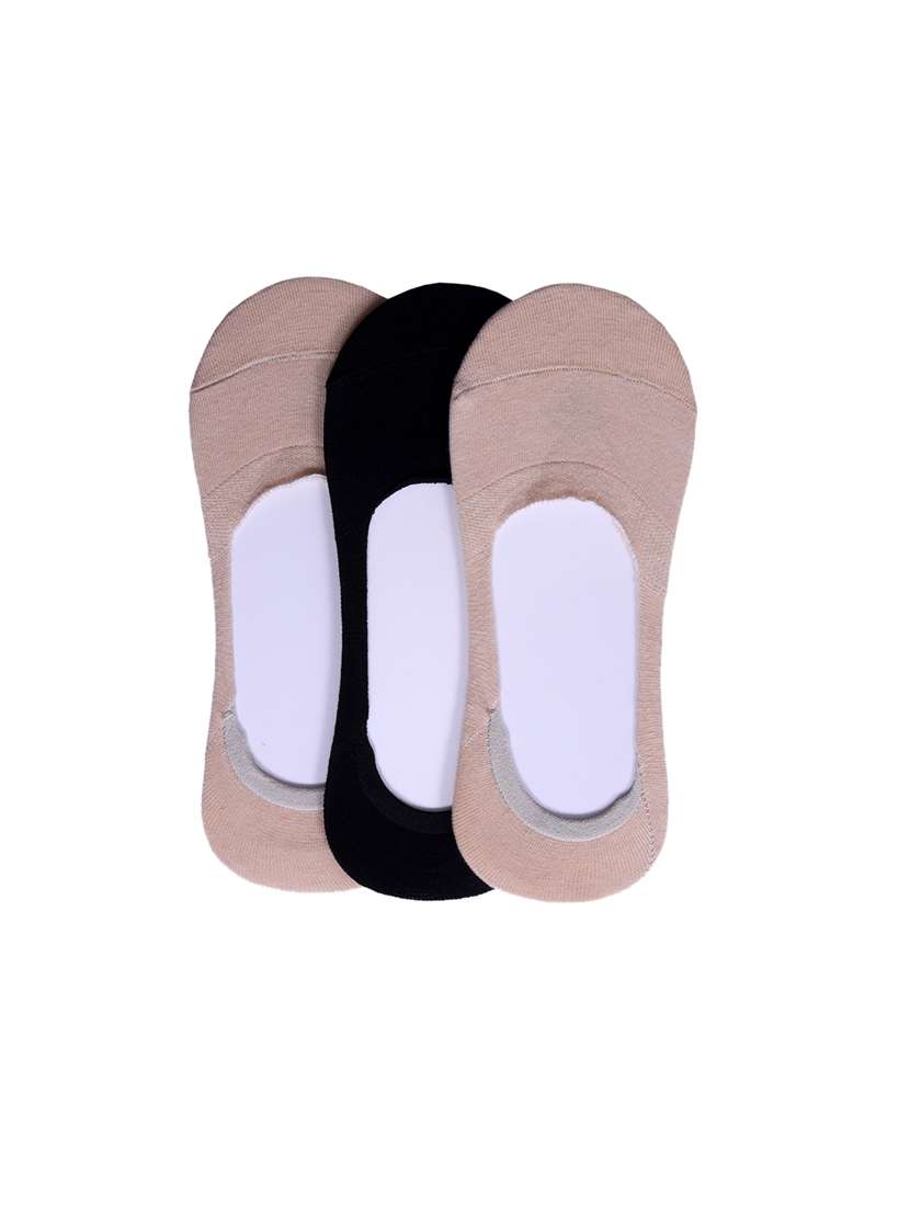 Women's Cotton Hidden Loafer No Show Invisible Liner Socks - Pack of 3 Pairs (Skin:Black:Skin)