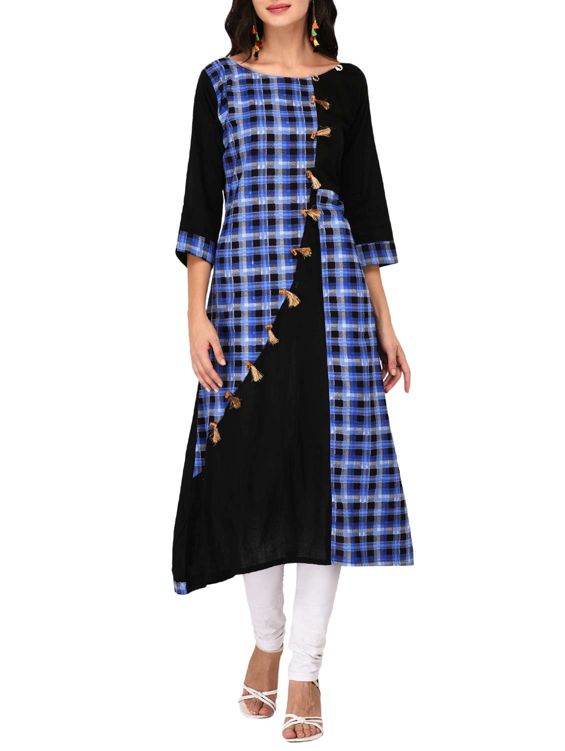 - » a-line checkered kurta with tassels