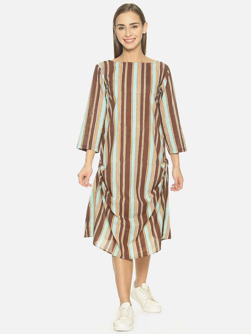 drape detail striped dress