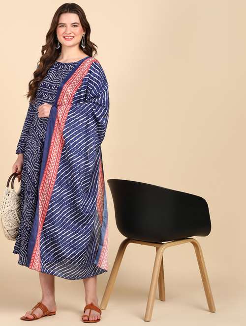 navy blue long sleeve kurta dupatta set