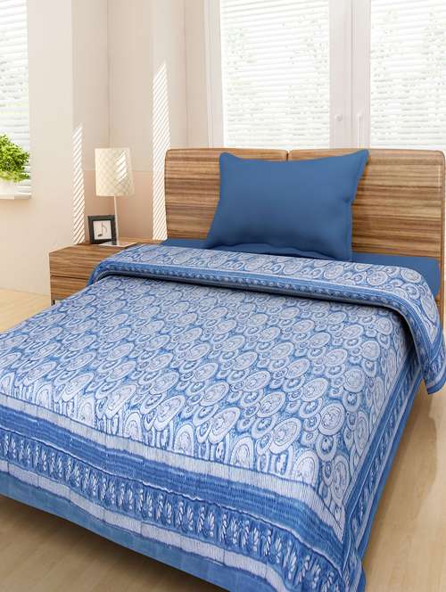 blue and white printed cotton quilt