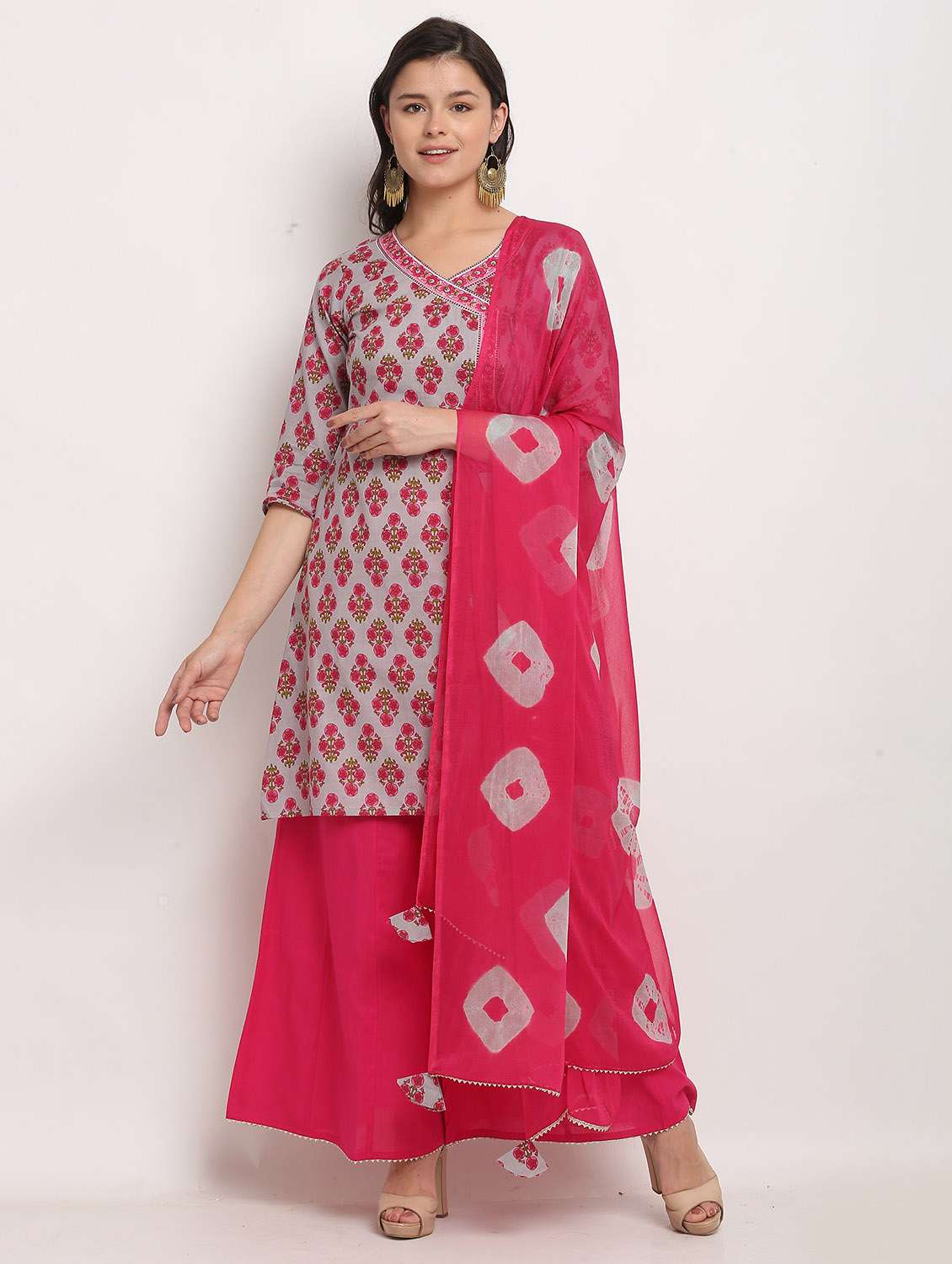 - » women printed three quarter sleeves suit set