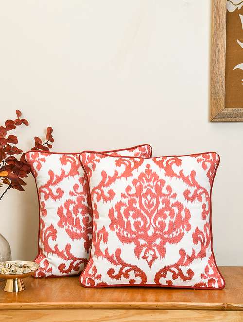 - » ratan cart peach cotton ikat embroidery 16x16 inch cushion cover set of 2