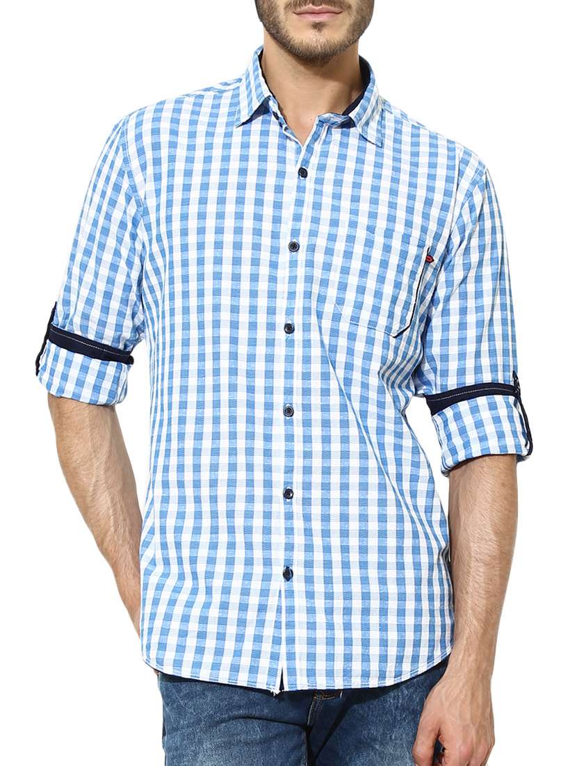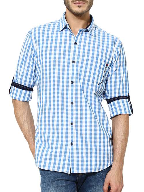 blue  cotton casual shirt - 11555515 - Very Small Image - 1