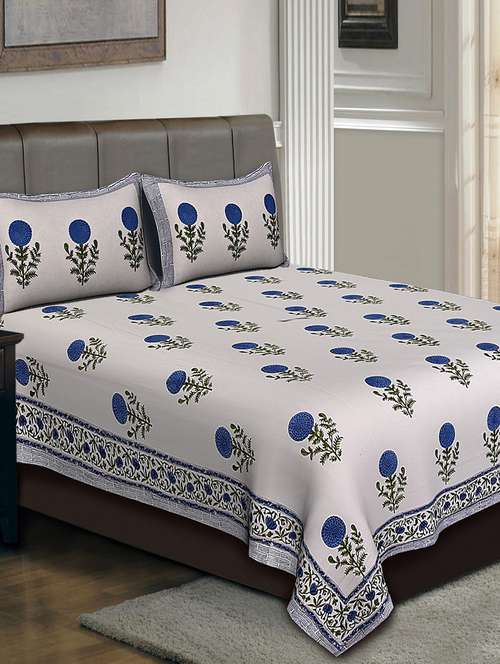 hand block cotton double bedsheet with 2 pillow covers - 14798444 - Very Small Image - 1