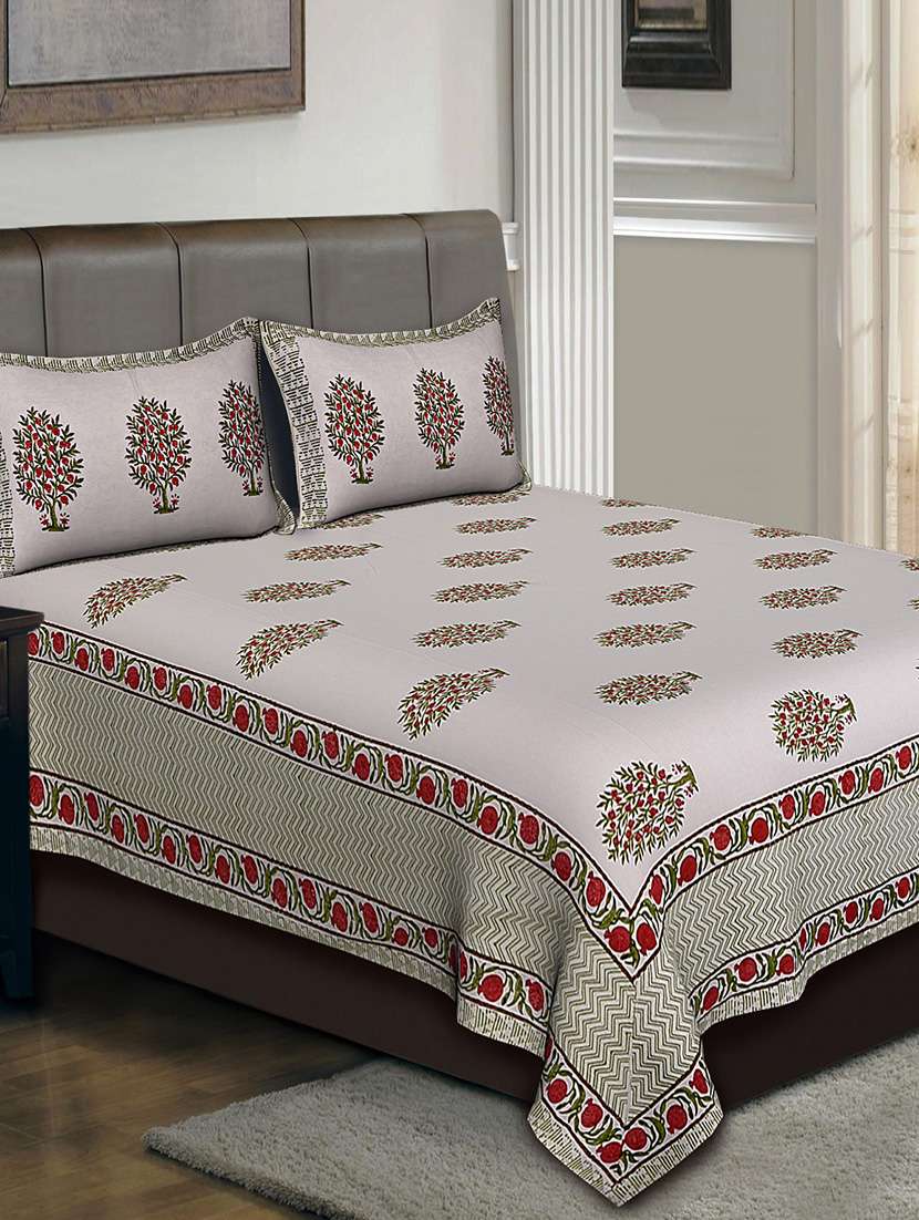 hand block cotton double bedsheet with 2 pillow covers