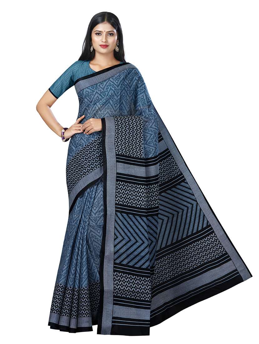 - » women's printed blue colored saree with blouse