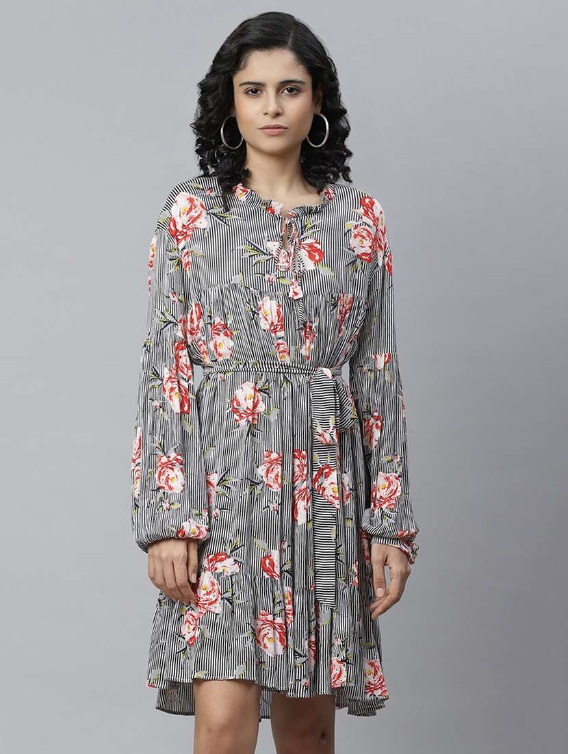 tie front striped flared dress