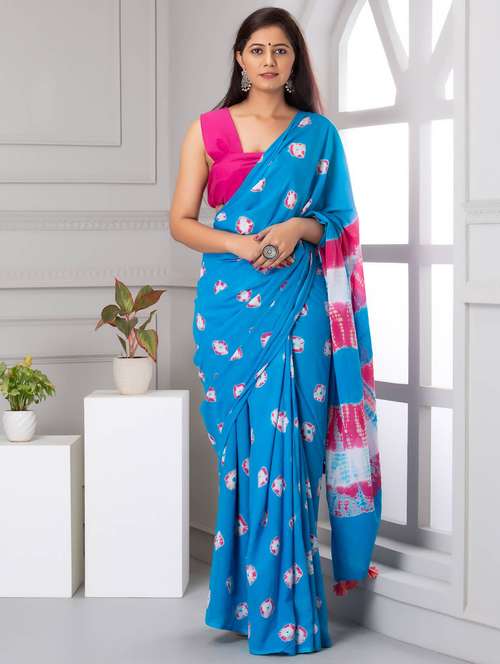 blue printed saree with blouse - 19796931 - Very Small Image - 1