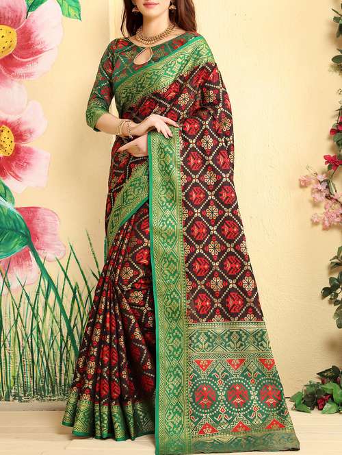 - » brown cotton silk patola saree with blouse