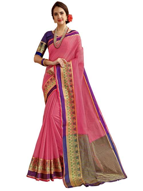 women's self design pink colored saree with blouse - 19596957 -  Standard Image - 1 women's self design pink colored saree with blouse - 19596957 -  Zoom Image - 1