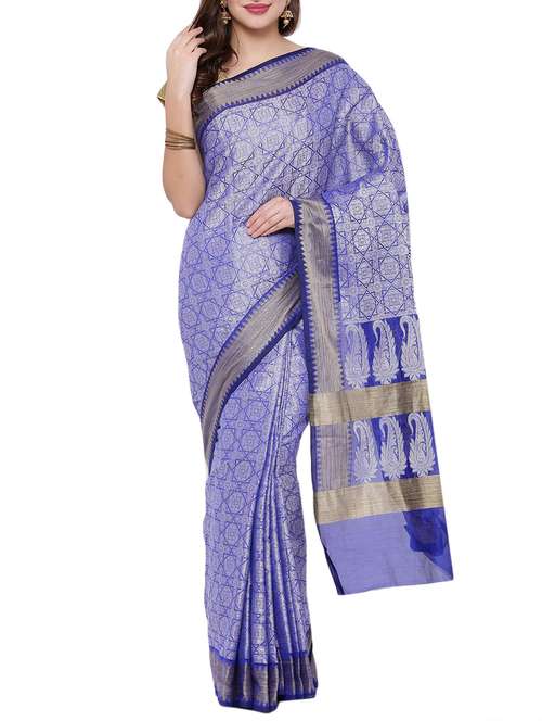 - » blue cotton silk woven saree with blouse
