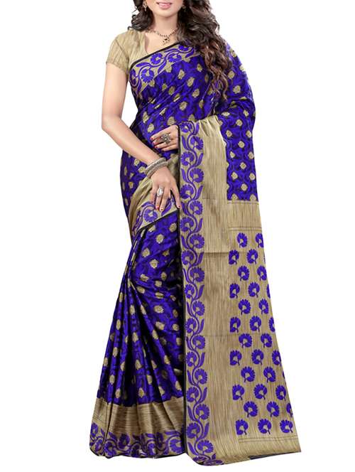 blue cotton silk woven saree with blouse