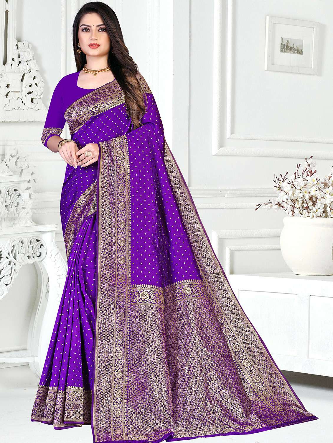 self design woven saree with blouse - 19861331 - Very Small Image - 1