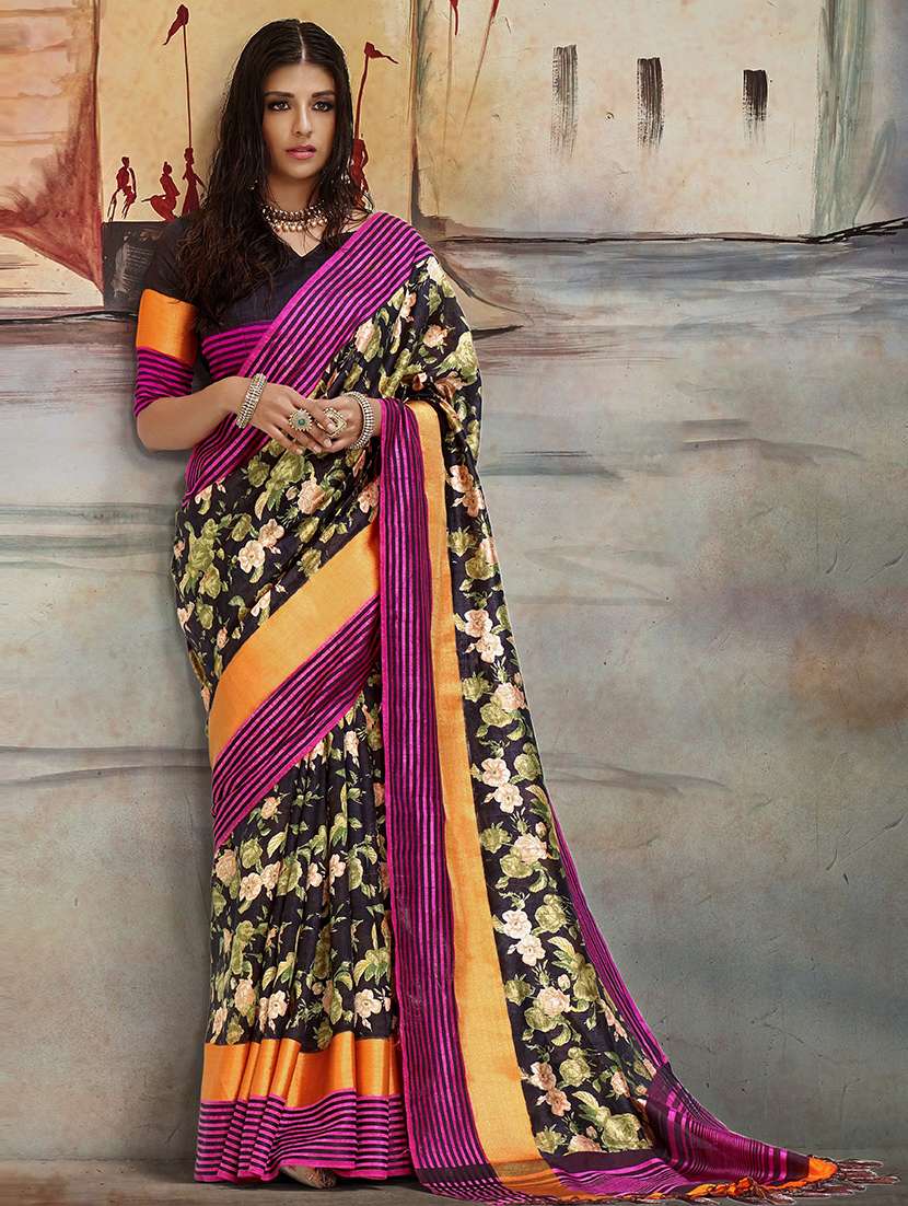 - » floral printed bordered saree with blouse