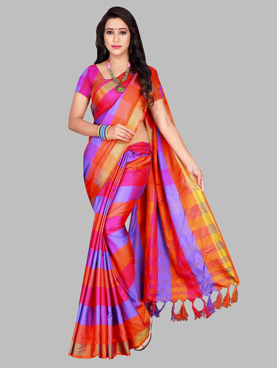 - » women's checks multi colored saree with blouse