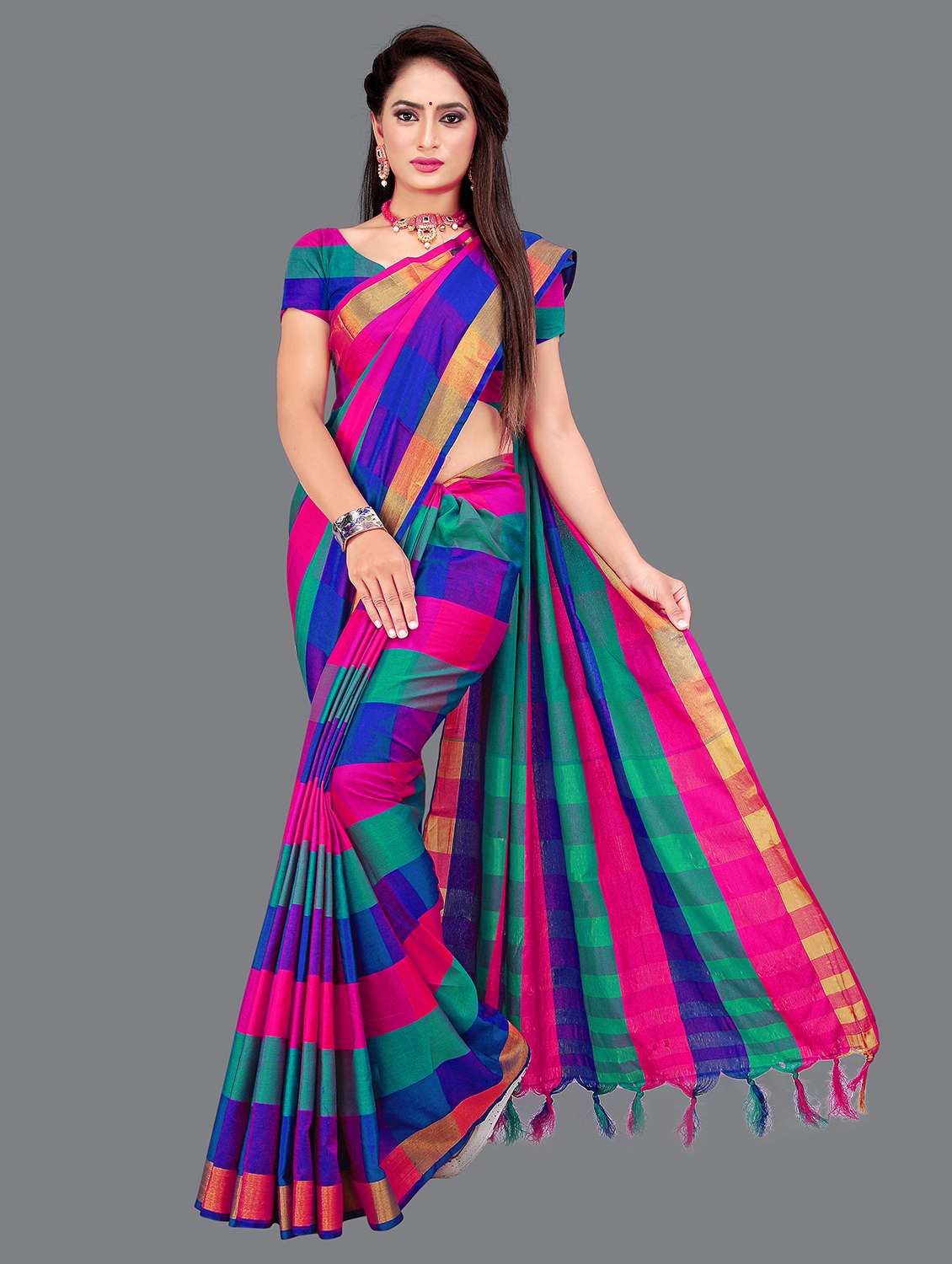 - » women's checks multi colored saree with blouse