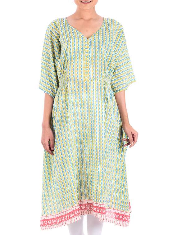 lime and blue printed cotton tunic