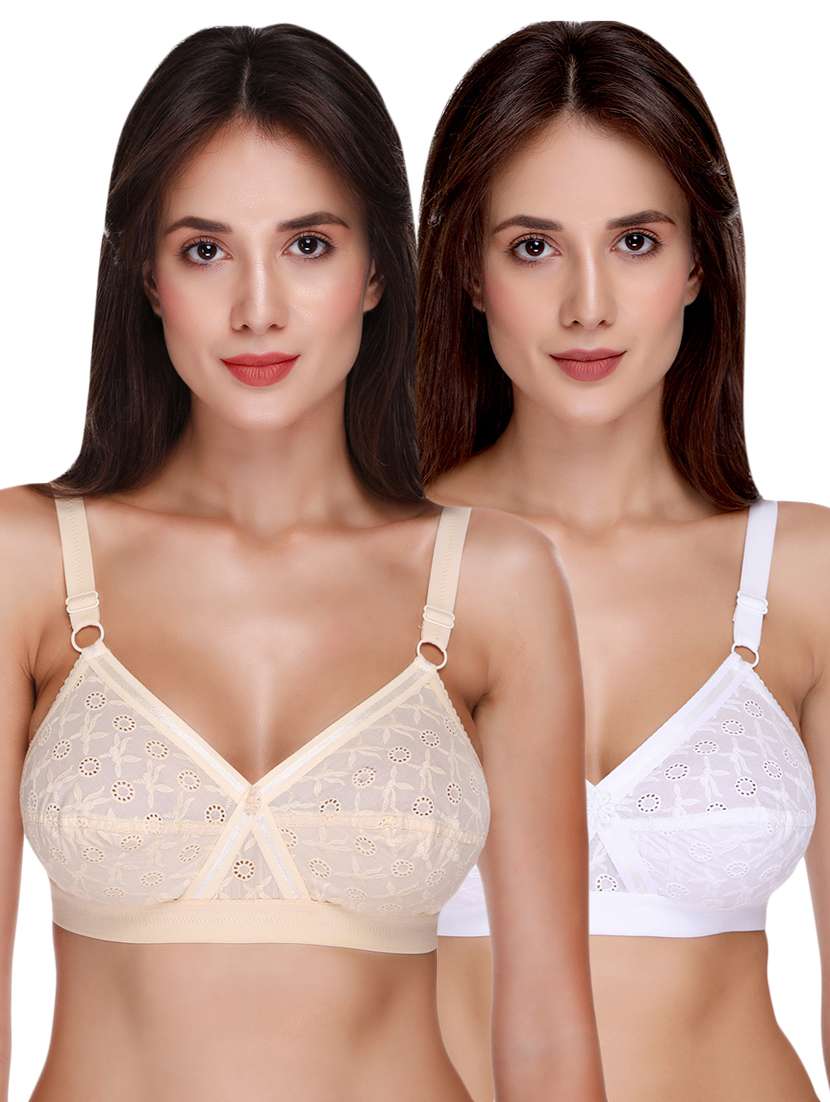 Fabric Over Panel Rigid Tape Tape Used 2-Part Embroidered Fabric Cup Offers Good Coverage , Side Shaping Panel Along Cup Offers Full Coverage And Minimise The Extra Flesh , Non Wired For Comfort, Double Layer Fabric Under The Lower Panel Of Cup To Uplift The Bust And Sweat Absorbent And Broad Underband Prevents The Bra From Shifting , Broad Side Wings For Perfect Fit. Elasticated Shoulder Straps With Sliders To Adjust. For Any service related support, please call@ 91-9310038585