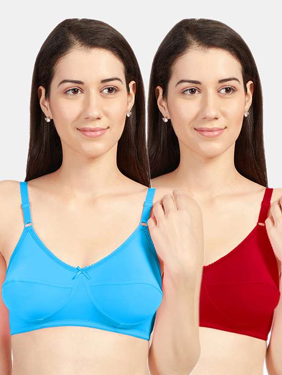 Wire-free for comfort and support. Full coverage for maximum support and no spillage from top and sides. Wide-High Centre panel for support & shaping. Seamed, non padded cups for great support. 2 row varying column hook & eye back closure. Cups constructed with a Double layer of fabric. Material used four way stretchable lycra