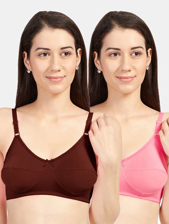 Wire-free for comfort and support. Full coverage for maximum support and no spillage from top and sides. Wide-High Centre panel for support & shaping. Seamed, non padded cups for great support. 2 row varying column hook & eye back closure. Cups constructed with a Double layer of fabric. Material used four way stretchable lycra