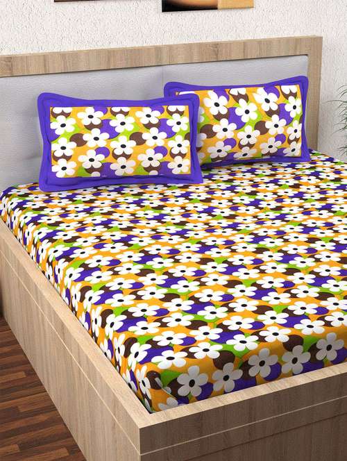 - » 120 tc 100% cotton blue & yellow printed double bedsheet with 2 pillow covers