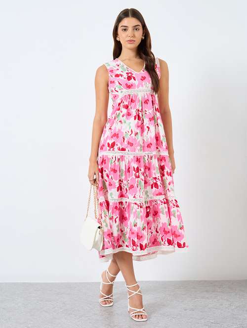 - » women printed sleeveless tiered dress