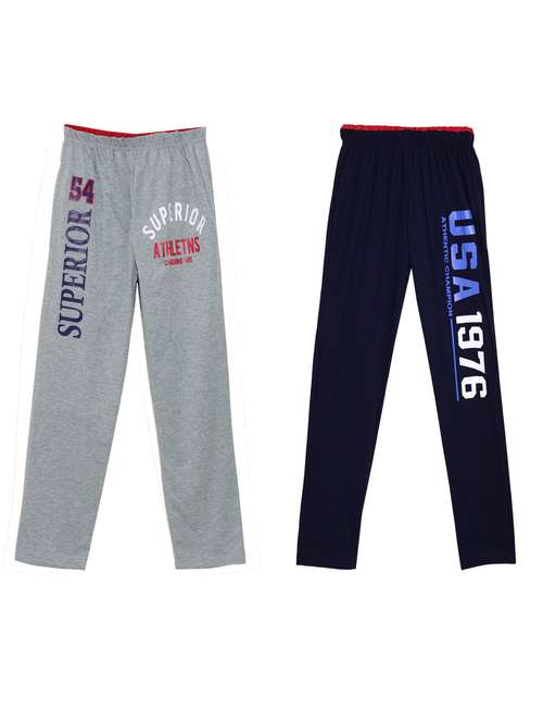 Sweet Angel Grey Melange:Black pack of 2 track pant in 100% cotton fabric for Boys