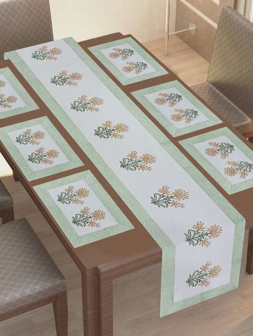 texstylehome thick cotton canvas jaipuri block print 6 table mats and 1 runner set - 18452266 - Very Small Image - 1