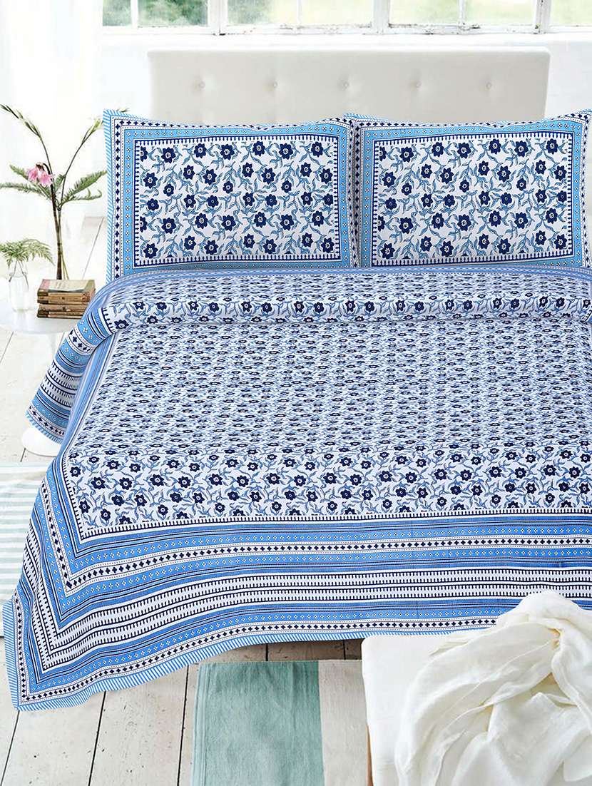 - » texstylehome multicolor cotton 86 x 106 inch jaipuri print double bedsheets with 2 pillow covers